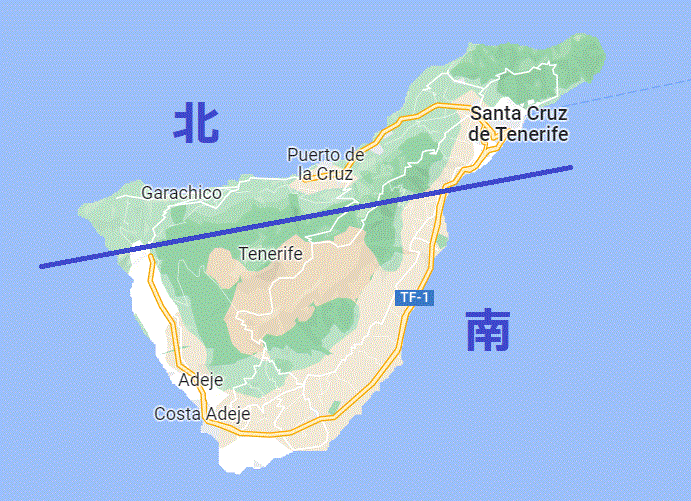 島は、テイデ山を境に島の上側を北、下側を南という言い方をします。